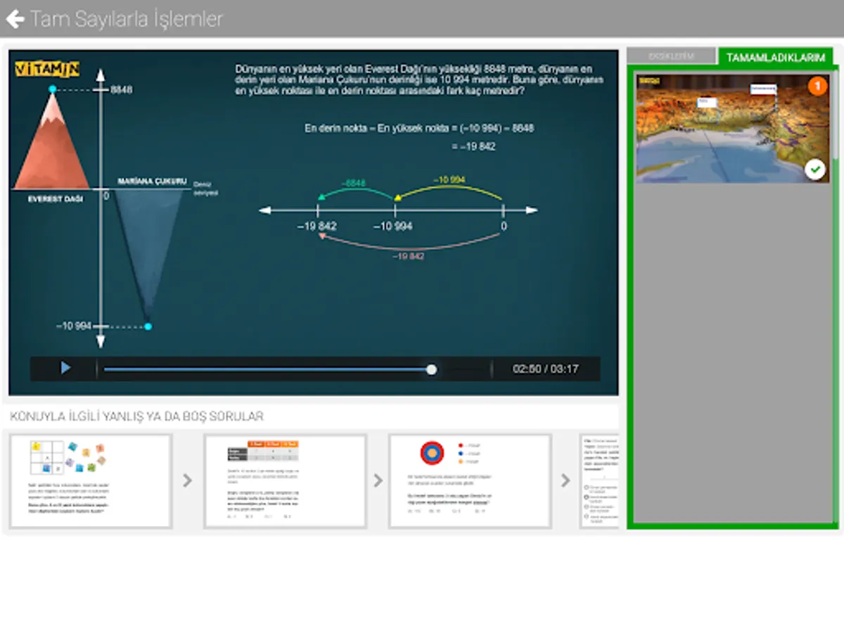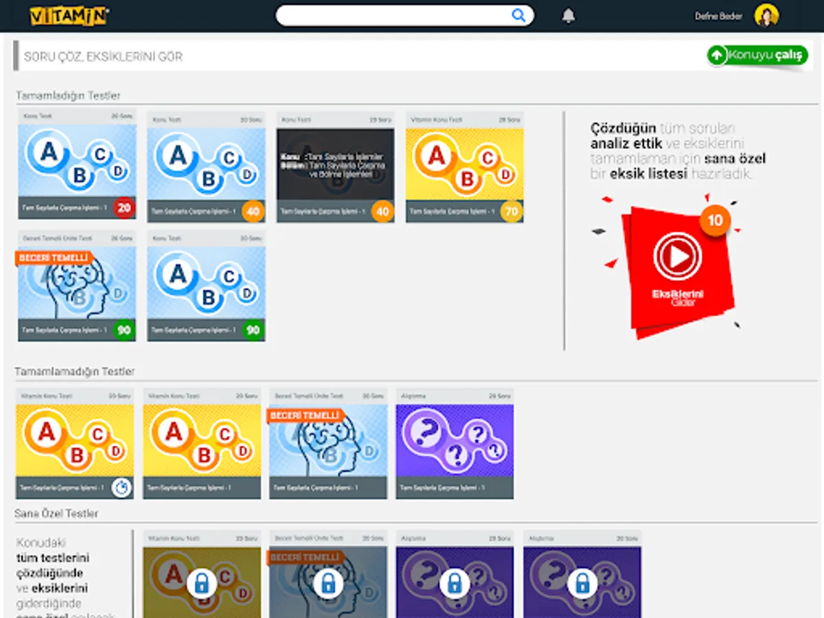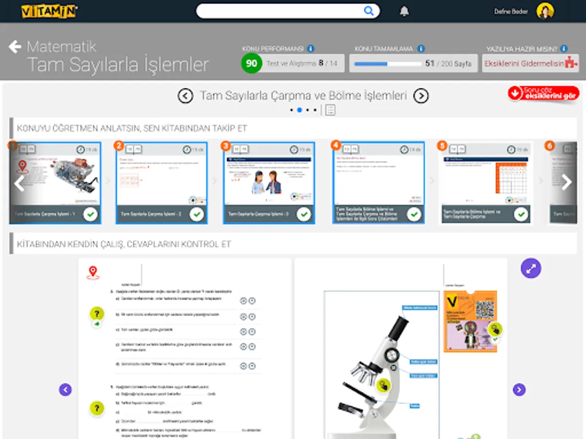 The content of Turkey's leading online education product Vitamin, which is compatible with the curriculum of the Ministry of National Education; It includes lectures, interactive activities, three-dimensional animations, virtual experiments, worksheets, summaries, open-ended questions, examples with video solutions, teacher lectures with videos, screening tests and practice exams.