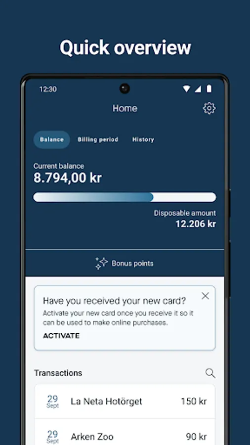 • Get notifications of important events, purchases or if you have reached your spending limit. You can also get notifications of updated exchanges rates, when traveling.