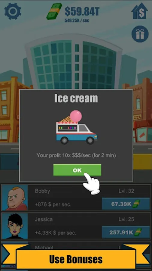 - Grow stronger and get more money. Tap! Tap!