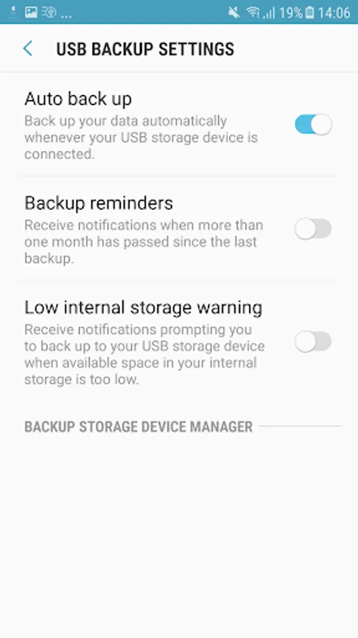 3. Notifications ON prompt to backup to your device when available space in your internal storage is too low.