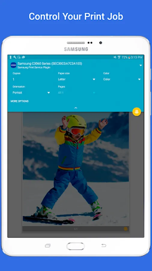 The Samsung Print Service is a system tool that enables wireless printing to Samsung printers and many other printer brands by integrating Mopria technology. Nearly all new printers sold today by Brother, Canon, Dell, Epson, Fuji Xerox, HP, Konica Minolta, Kyocera, Lexmark, Pantum, Ricoh, Samsung, Sharp, Toshiba and Xerox are Mopria-certified to make it easy to print your photos, web pages, documents, coupons, recipes and files from your favorite apps. You can even control print settings including color, number of copies, paper orientation and double-sided printing.