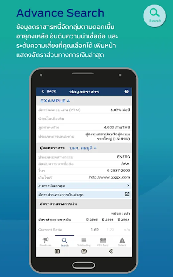 Advance Search Bond information grouped by interest rate Maturity credit rating and the level of risk that you can choose Added a page showing the latest financial ratios.