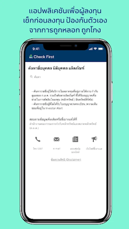 "SEC Check First" investment application in the capital market by an impartial and reliable official agency For those who are persuaded to invest or use investment services Check the information of those who have been/have not been authorized by the SEC before making an investment decision.