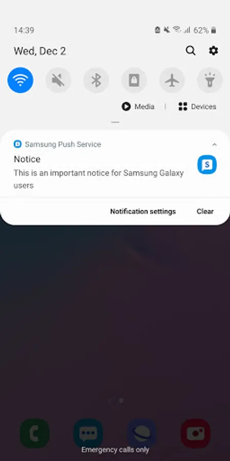 The Samsung push service provides the notification service only for Samsung services (Galaxy Apps, Samsung Link, Samsung Pay, etc.) on Samsung devices.