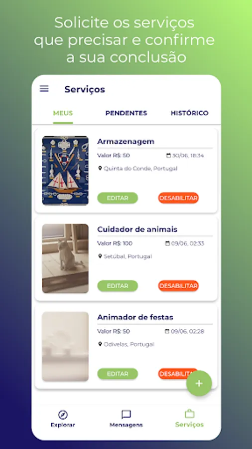 Share your services with others. Ask for the services you need and confirm your conclusion. Search for those near you or use filters, choose your favorites and give your rating.
