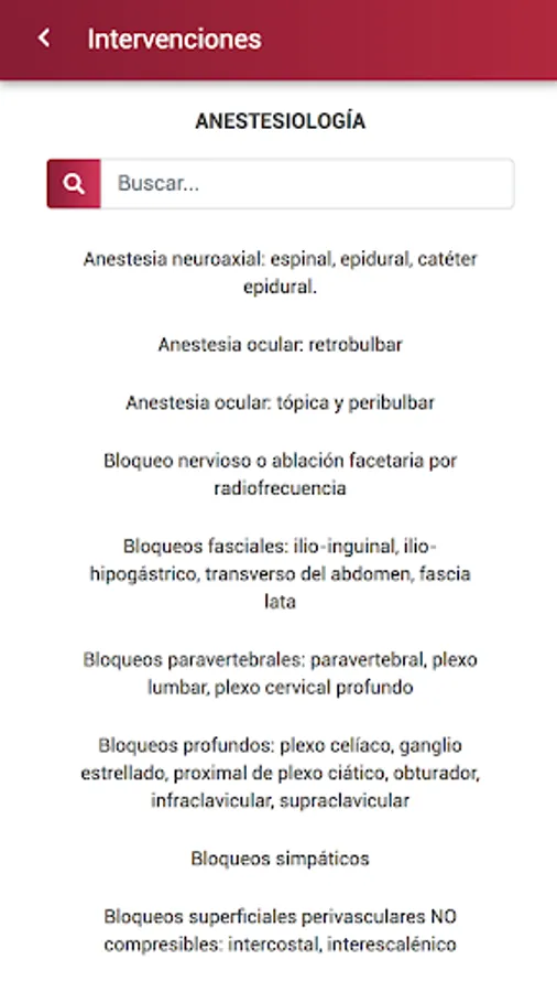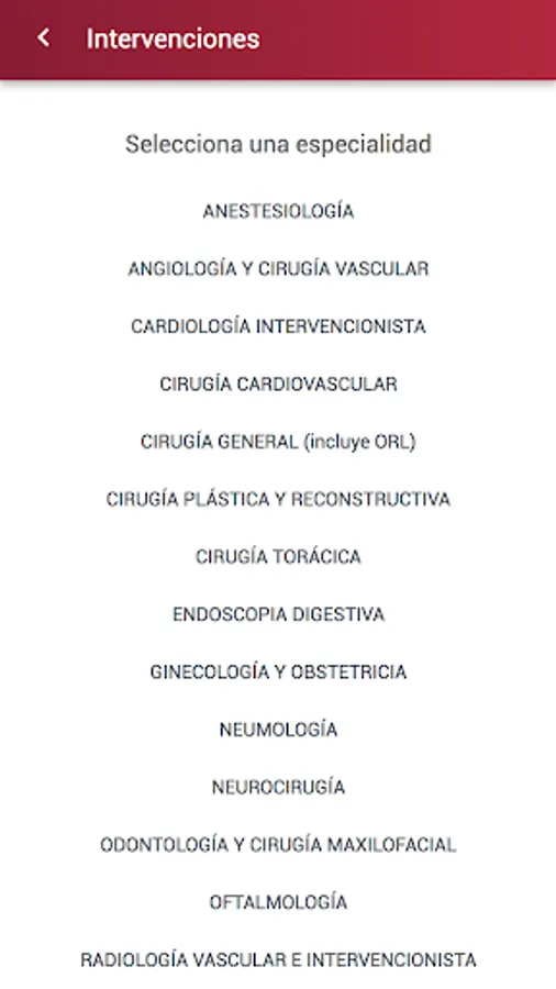 • Type of intervention and hemorrhagic risk. The application gives a choice between different types of surgical intervention to which the patient will be submitted among five categories.