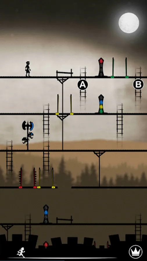 «Vive le Roi 3» is a puzzle and anticipation game, without chance or timing, based on mini puzzles to be solved by choosing the right ladder on each floor to reach the king and save him from his executioner.