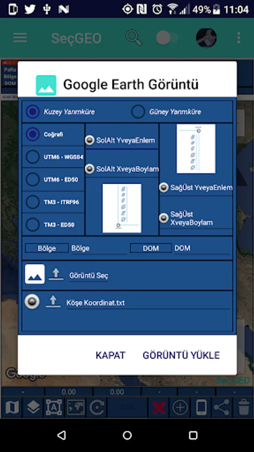 > Ability to load the image in Google Earth with the right upper and left corner coordinates