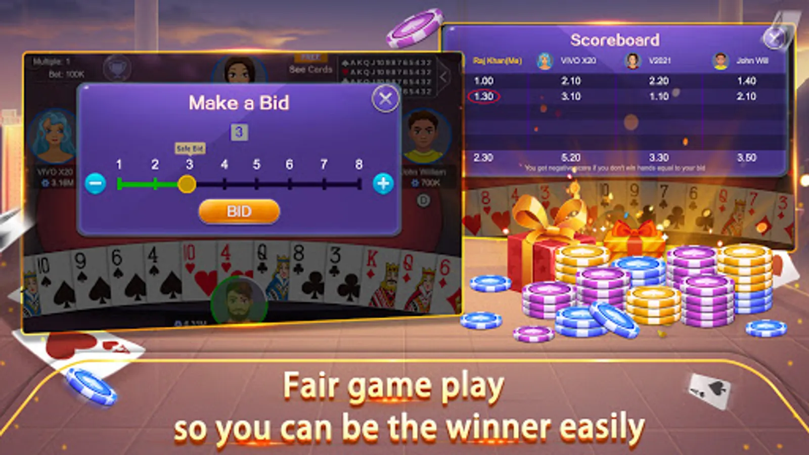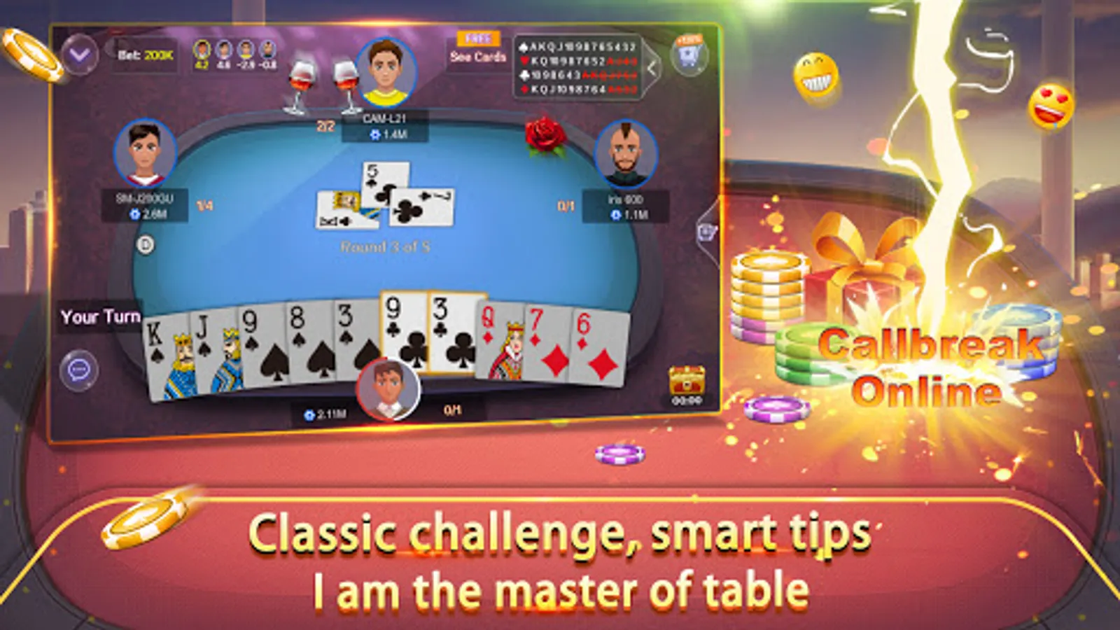 Play Callbreak Multiplayer Online Cards Game together.