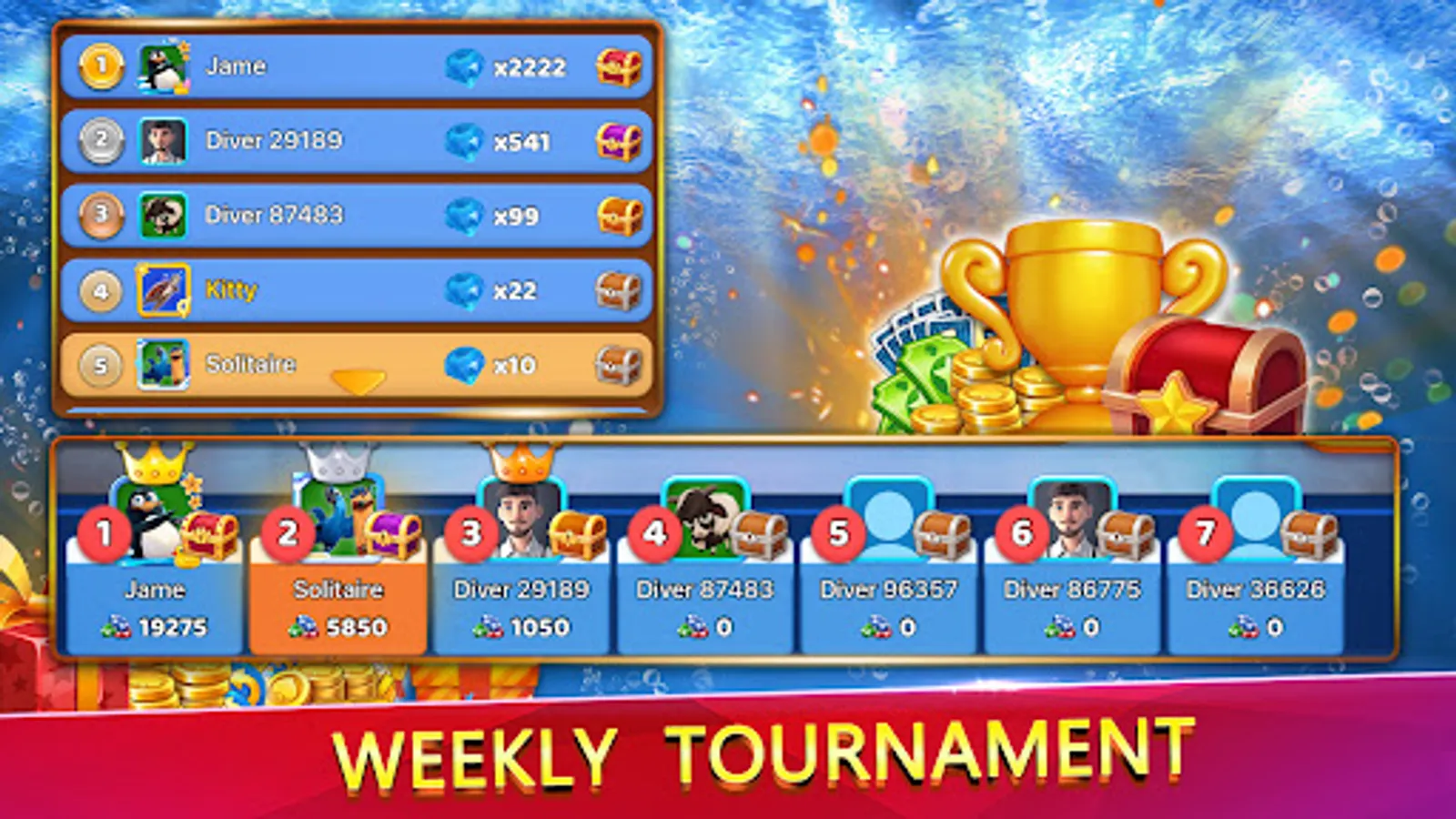 Journey the mysteries of the undersea with Solitaire TriPeaks Adventure, the classic solitaire ocean card game which allows you to train your brain with different solitaire puzzles.