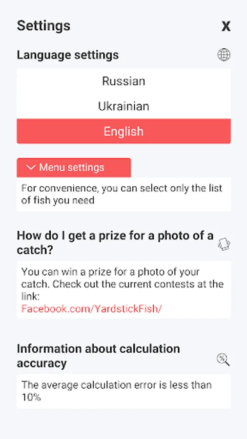 - Quickly transfer, by a unique algorithm, the weight of the fish in length, or the length of the fish in weight.