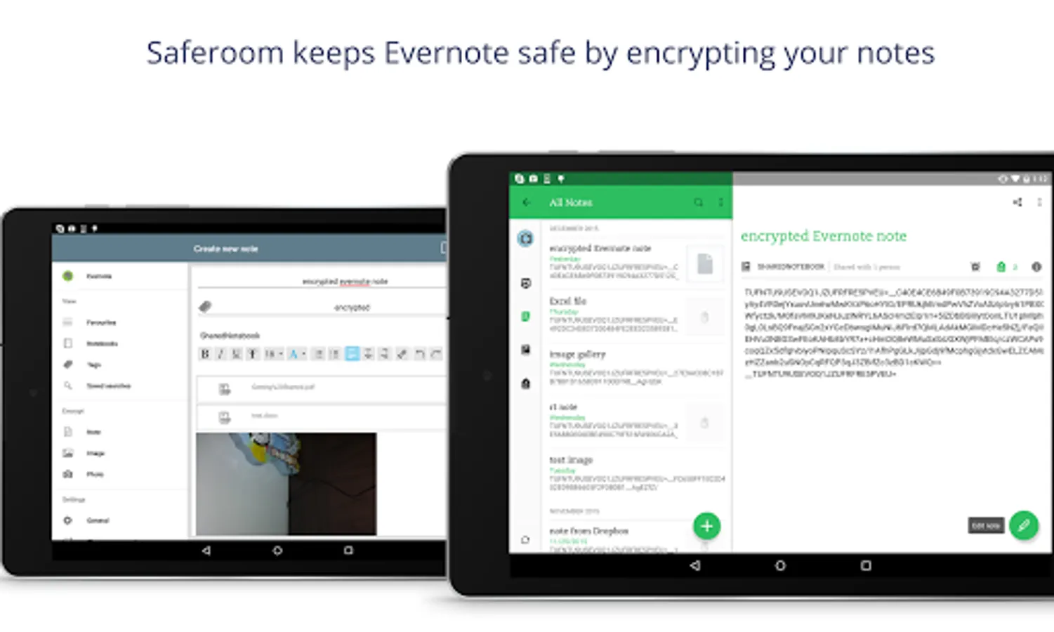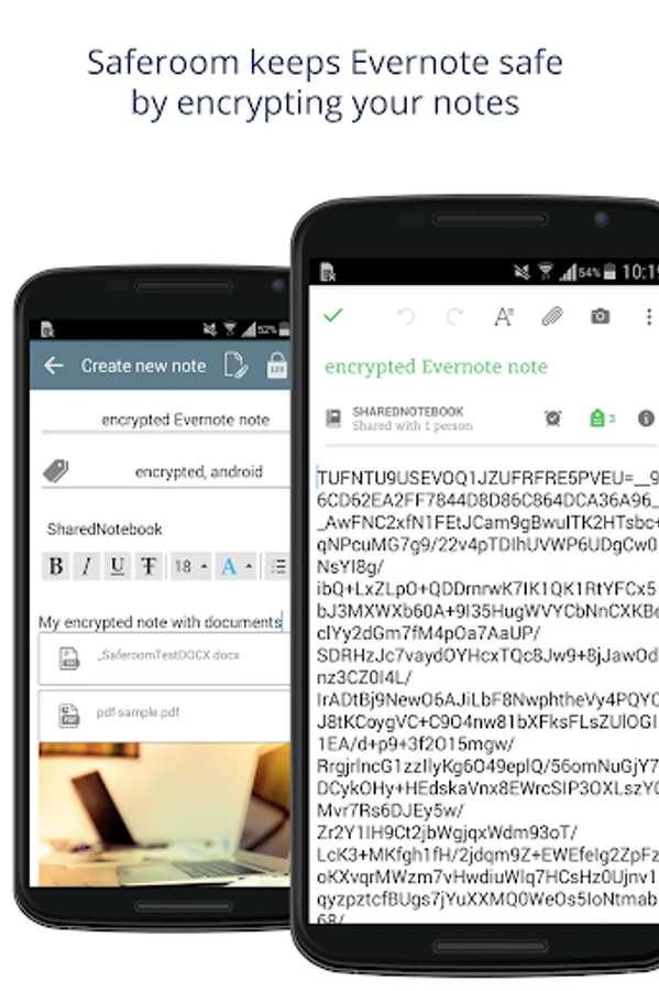 - Saferoom extends existing cloud apps with zero-knowledge encryption - right now with Evernote support you can create encrypted and secure Evernote notes. Note attachments (PDF, images, audio, video, MS Office documents, RTF, TXT and other types) are also encrypted.