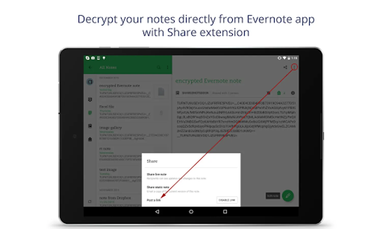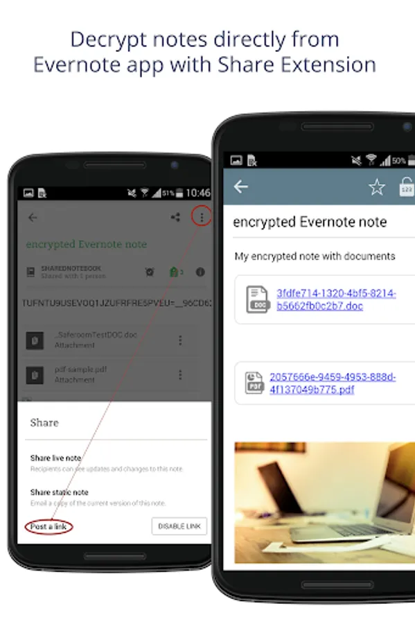 - Saferoom Share extension allow you decrypt your notes directly from Evernote app