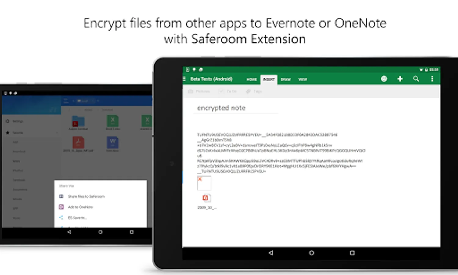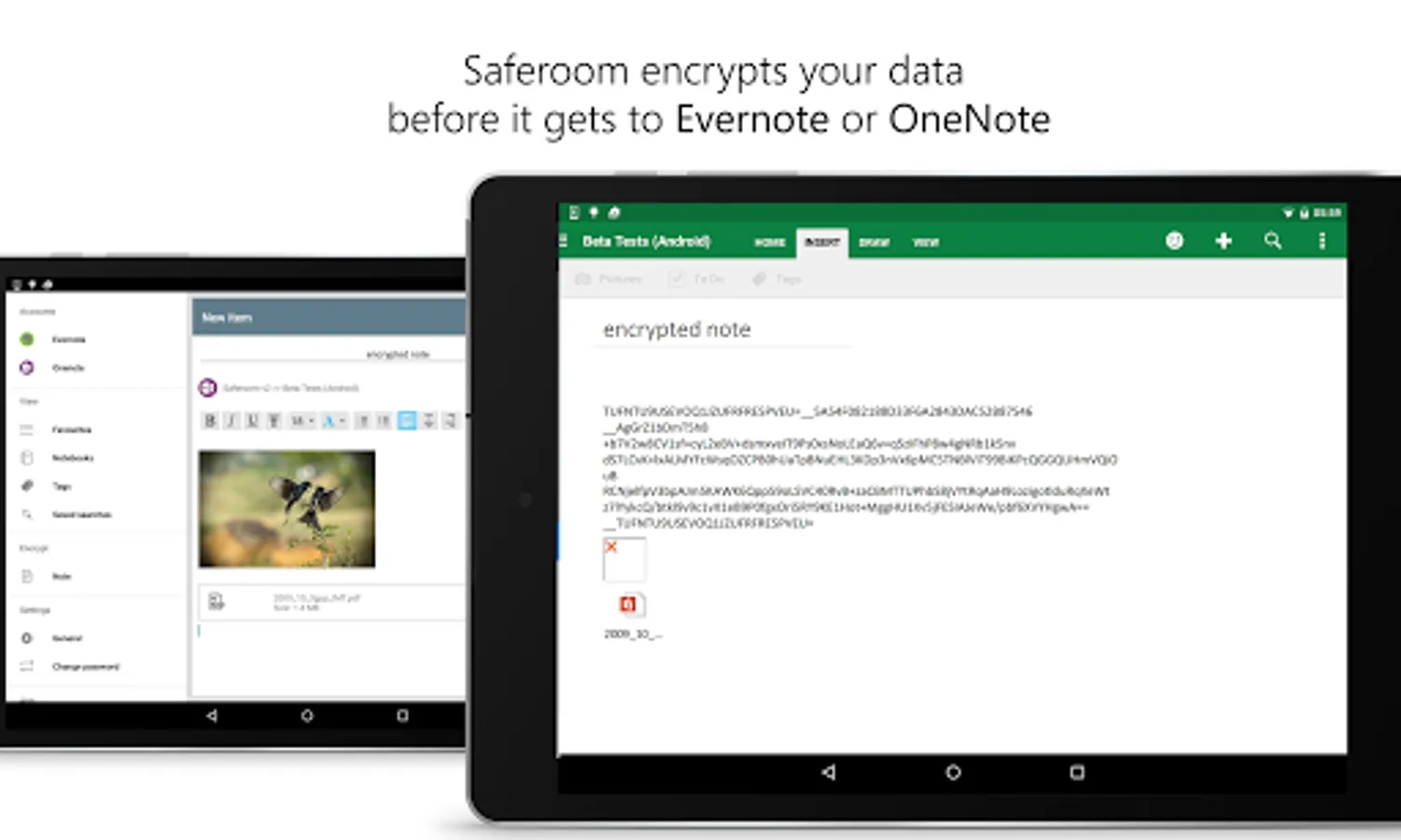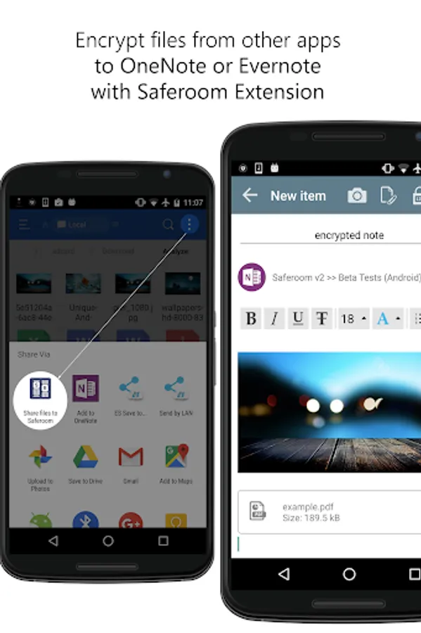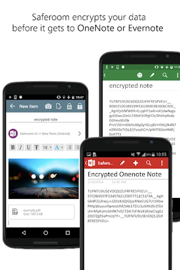 Saferoom protects your data by encrypting it before it leaves your device to be uploaded to online cloud apps like Evernote or OneNote.