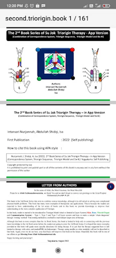 This book is the 2nd Book Series that aims to combine various knowledge, although it is still aimed at solving non complicated physical health problems. This book has many more examples of therapeutic use applications. This is because the readers are expected to have understanding of the 1st series of books and in this book we provide knowledge to improve their understanding to the more complex application of Triorigin. In this book, reader is started to be introduced to Triorigin Model which is limited to Layer System (Skin, Bone, Muscle/Organ and Communication System) – Type 1, Type 2 and Type 3 of Layer system and how to make a simple ‘chain diagnosis’ through ‘renting’ method. This renting method is a method to reach deeper target area of therapy. Although this book is more complex than the 1st Book Series, this book is limited to help only in connecting with the previous basic knowledge in the 1st Book series before the readers are going to enter the 3rd Book Series. It is hoped that many examples provided in this book will guide more specific directions for doing therapy. It is just that the therapy suggested here is still limited to therapy with color, and mudra/PDK (in Indonesian). Therapy using needles or other modality will not be described in this book. Again, even we do our best, your feed back will improve this book in the future. Hopefully this book will be one of our efforts to get blessing from Allah Subhannahuwata'ala. Happy learning and practicing!!