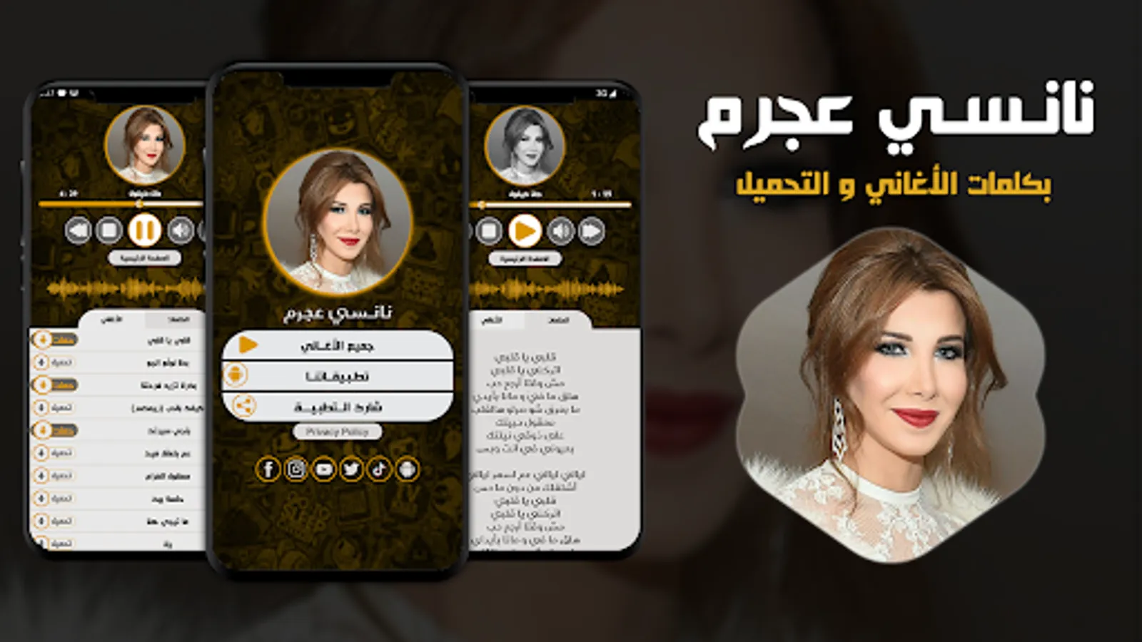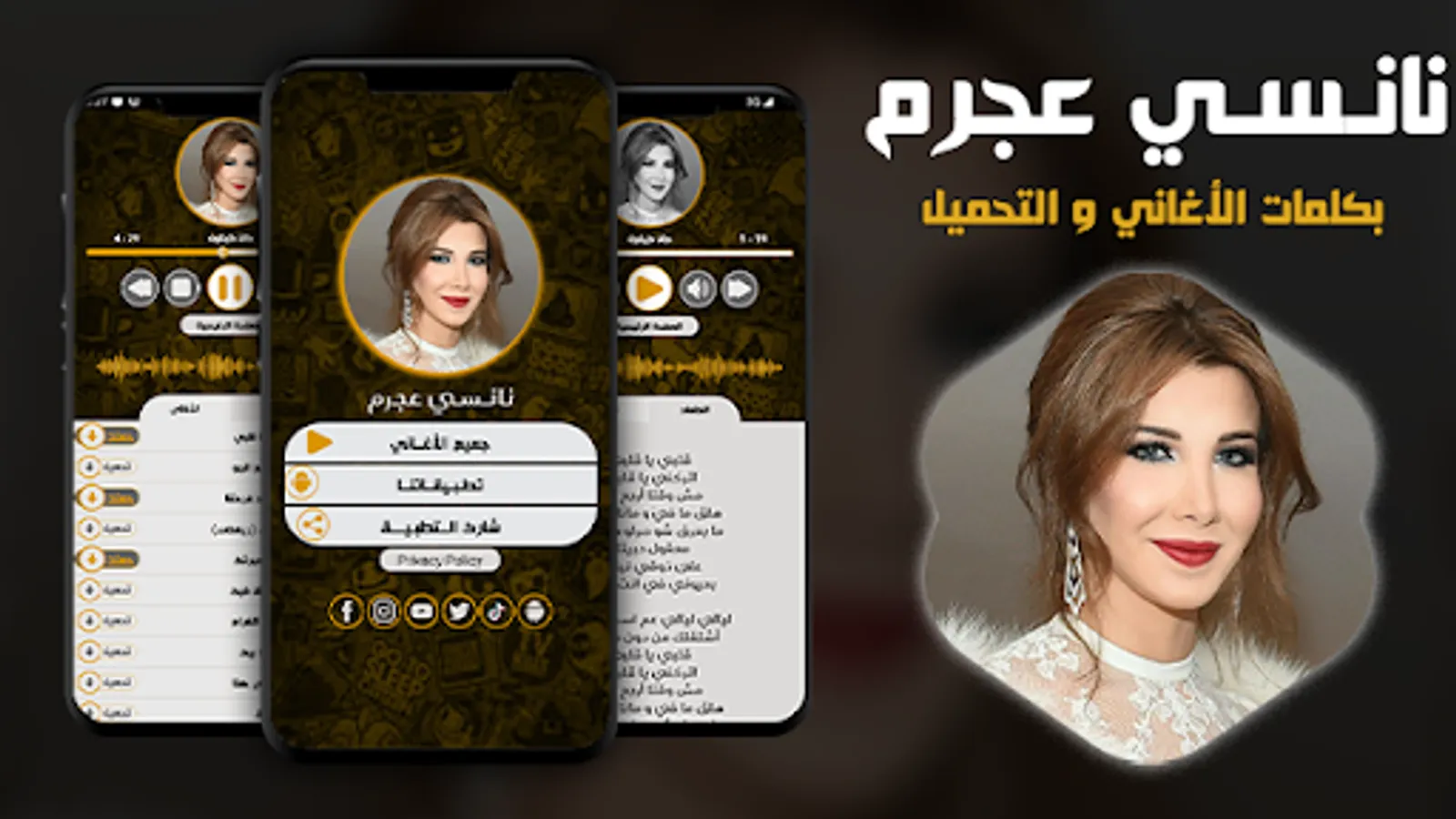 Do not hesitate to download the Nancy Ajram songs app now, enjoy listening to her most beautiful songs with lyrics, and share it with your friends and family to have the best music experience ever!