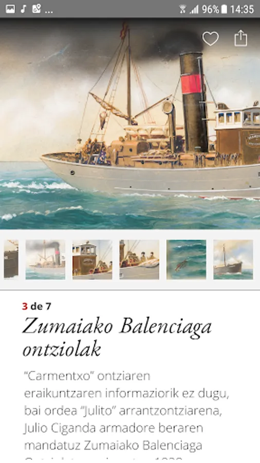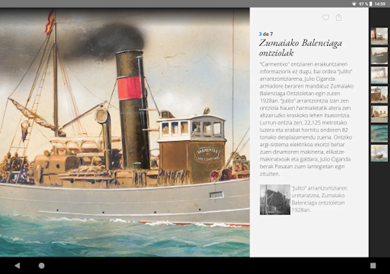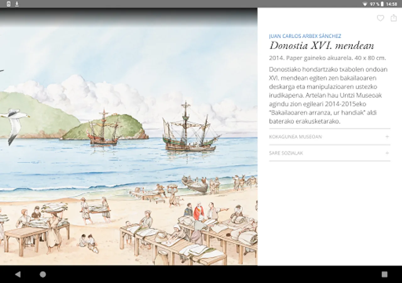 Explore, navigate, approach the Basque marine heritage through the selected pieces from the Basque Museum Collection, using high resolution technology, from any media. You can share your experiences with your friends through social networks.