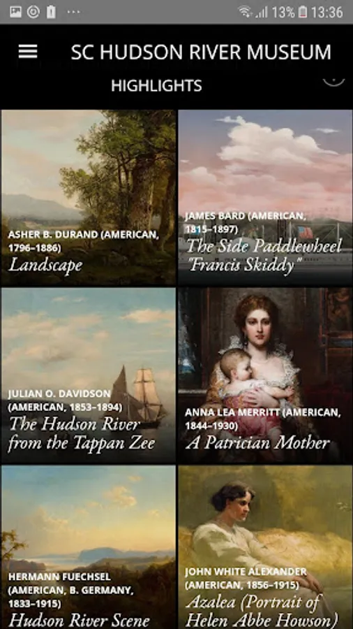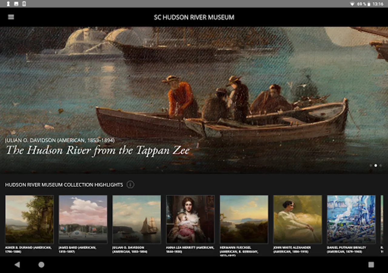SC Hudson River Museum app is your tool for exploring the Hudson River Museum art collections in super high resolution, like never before.