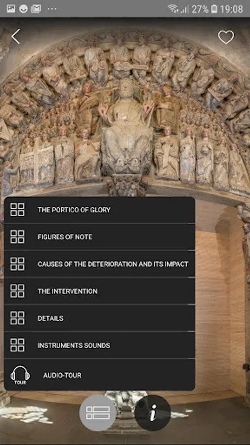 - Narrations on key figures and details in the Portico, its symbolism, causes of deterioration, intervention, etc. Even listen to how the instruments depicted in it would have sounded.