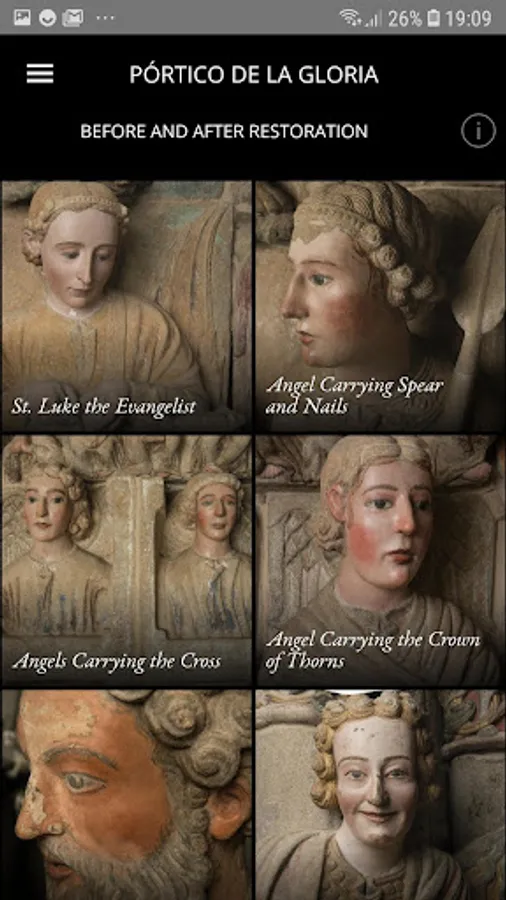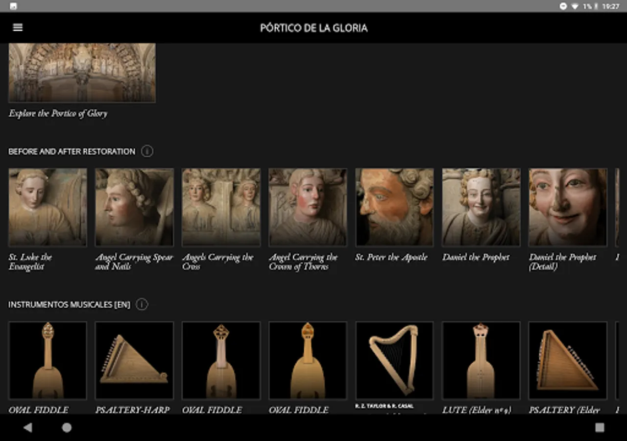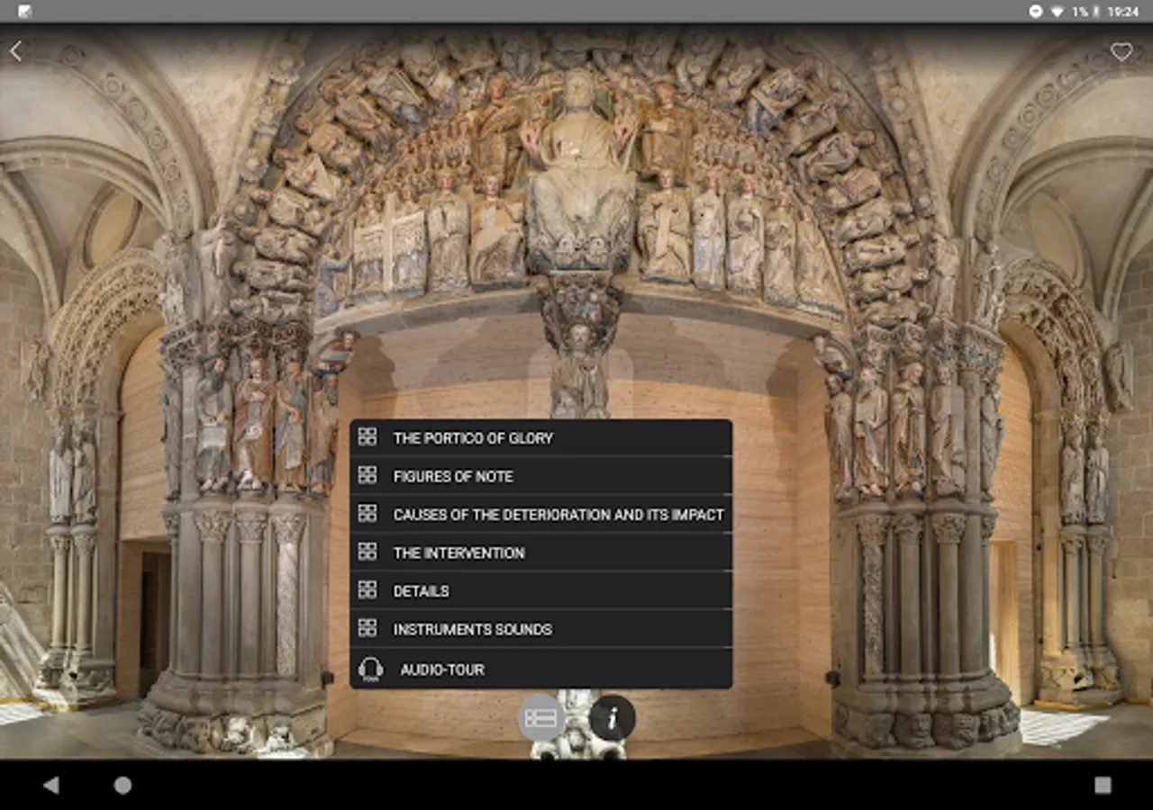 Second Canvas app is an innovative tool that allows you to explore the Portico of Glory in super-high resolution as never seen before. Discover, learn and enjoy the stories told by experts through the storylines, details about the restoration, and 3D reconstructions of the musical instruments in the work.