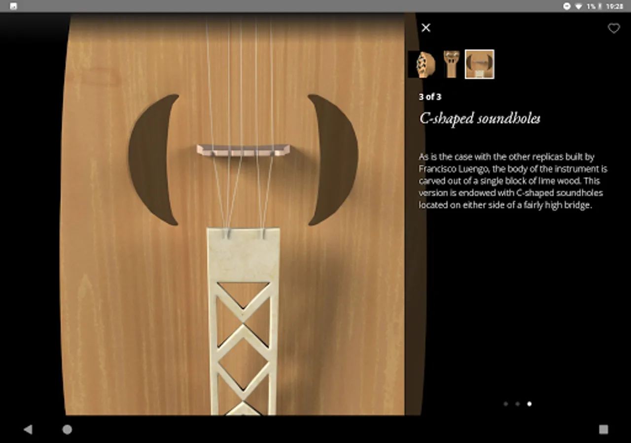 - 3D reproduction of the instruments that appear in the Portico, with interactive explanations of their features and elements.Free app available in Spanish, Galician and English.