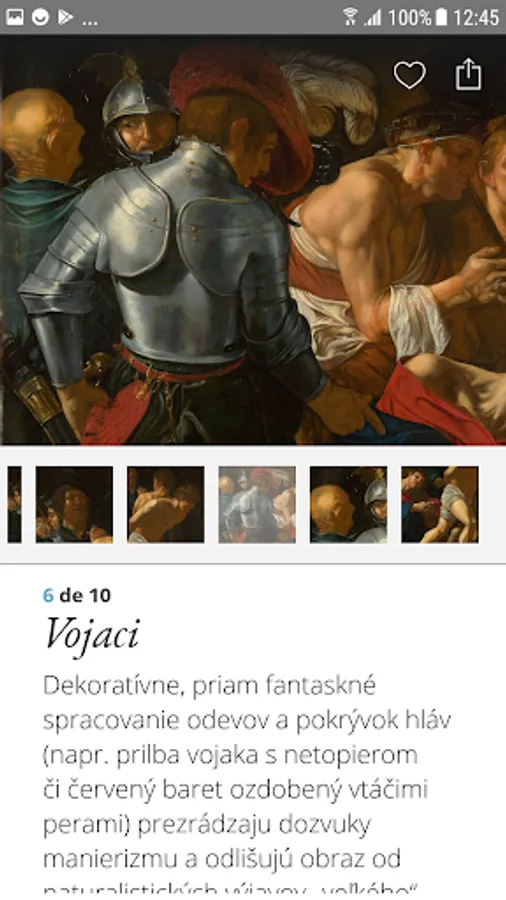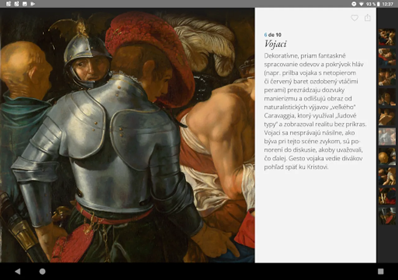 • Super-zoom to explore the works with the best possible quality, to the extent of being able to see the brushstrokes and craquelure of the painting.