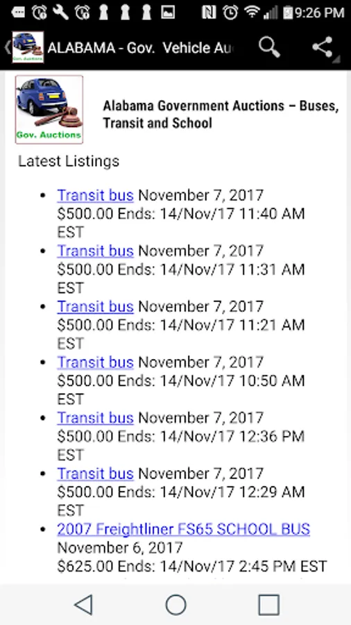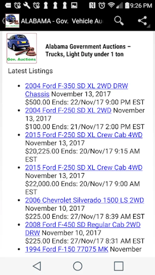 This is a third party app and we are not affiliated with Gov deals or US Government.. If you are looking for an app that consolidates all the Gov Deals vehicle Auctions, this is a good app to start with. Listings can also be found on the GSA website and this is a feed for the listings published by Gov Auction.