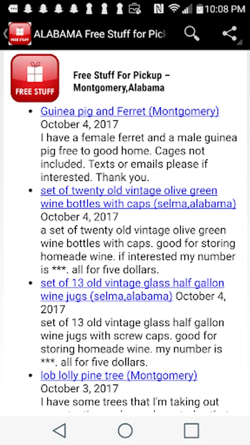 App for searching stuffs including items with no cost for pickup - All US states & Cities