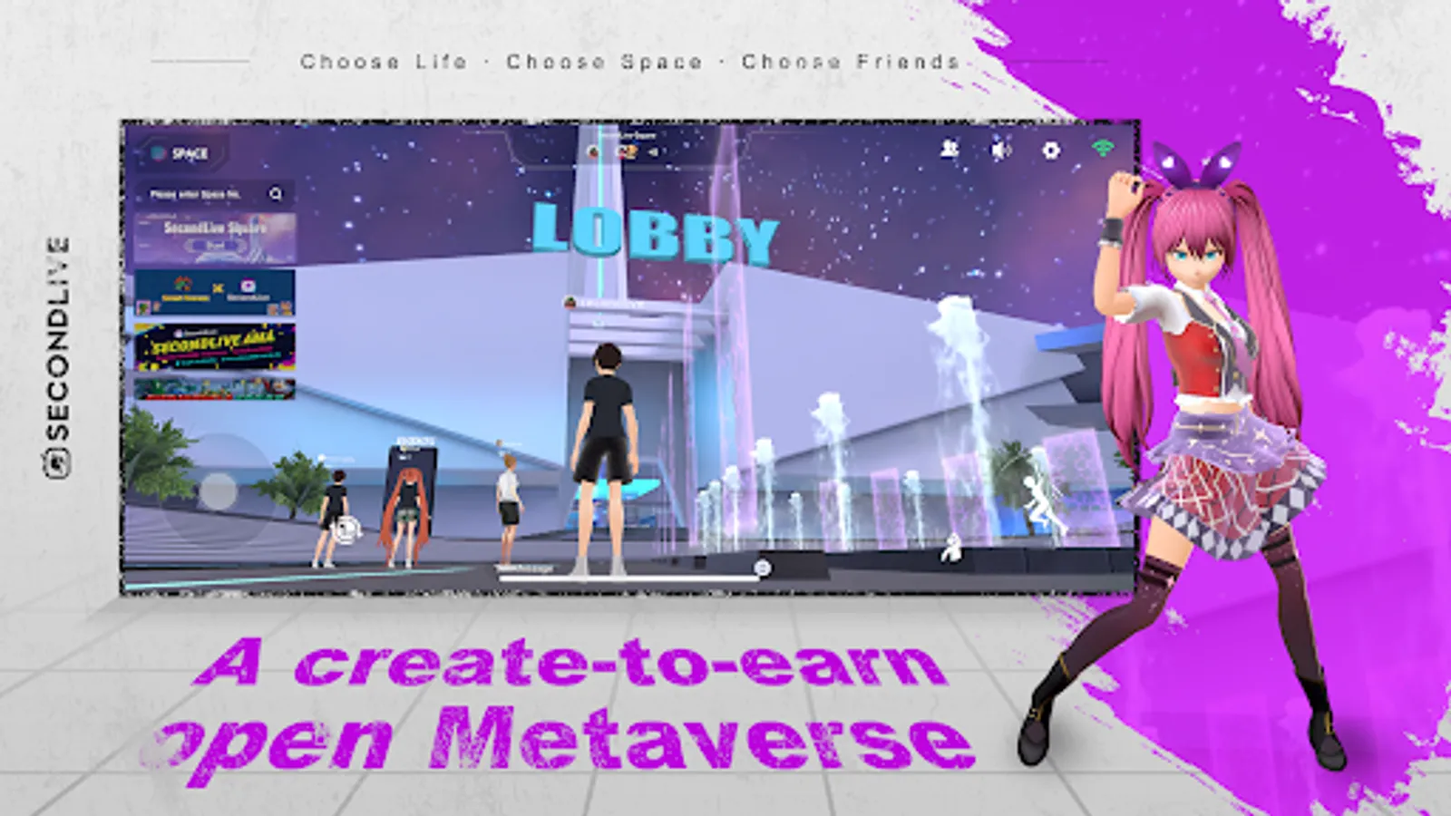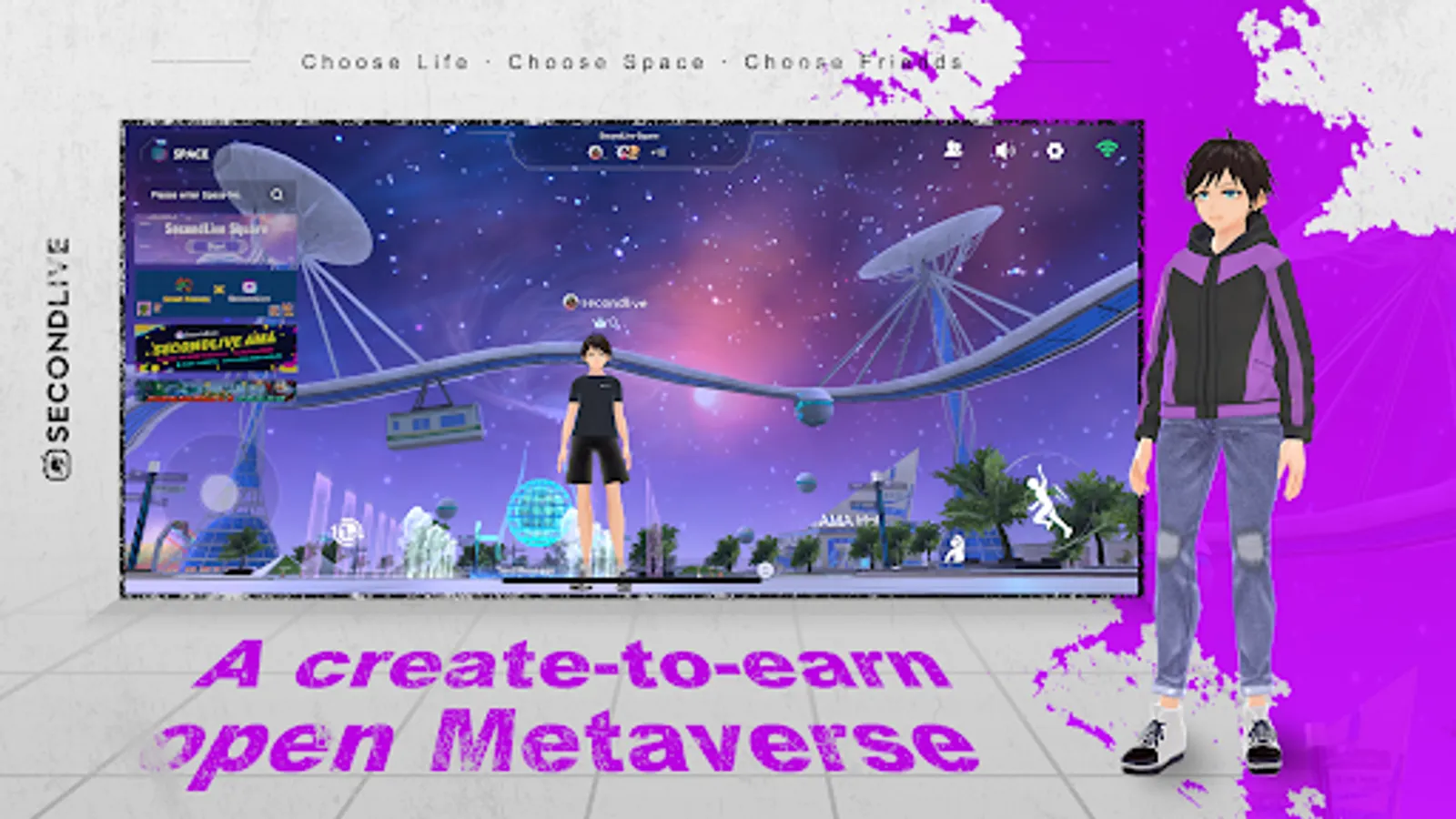 In SecondLive, users can craft their own digital lives -- creating their own avatars and choosing spaces to stay and to live. In different spaces, users can complete different tasks with avatars. These avatars help creators and users make their own content and profit from their own creations. The team continues enriching Avatar styles and Space to satisfy diversified application scenarios, including AMA, livestreaming, interaction, entertainment, make friends, staking and so forth in virtual world.