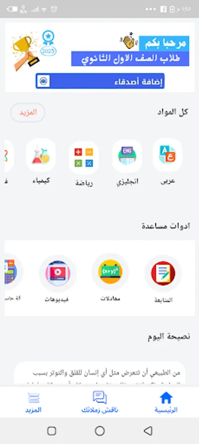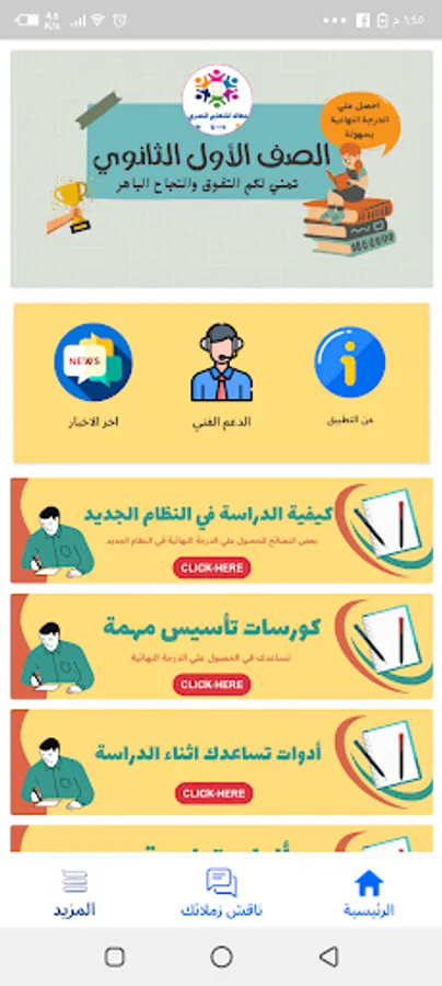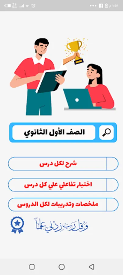 The application helps all students of the first year of secondary school to obtain the final grade in all subjects, as it provides an explanation of all lessons in all subjects with interactive tests on all lessons. It also provides them with placing his questions inside the application and they are answered by experts in all subjects
