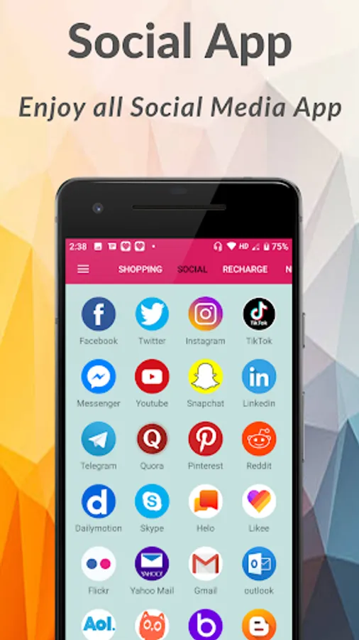 This free app is the only app you need to navigate all apps for Shopping, news, sports, food, entertainment, health, Social Network in a single click.