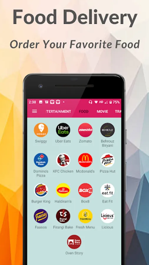 Swiggy, Zomato, Uber Eat, Food Panda , Mcdonalds, Dominos, Pizza Hut, KFC, Burgerking, Haldirams and many more.