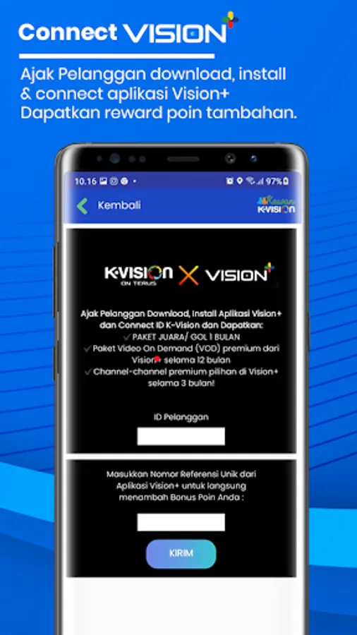 K-Vision is a subscription-based satellite TV company Prepaid reach all corners of Indonesia with a wide range of advantages and favorite shows whole family.