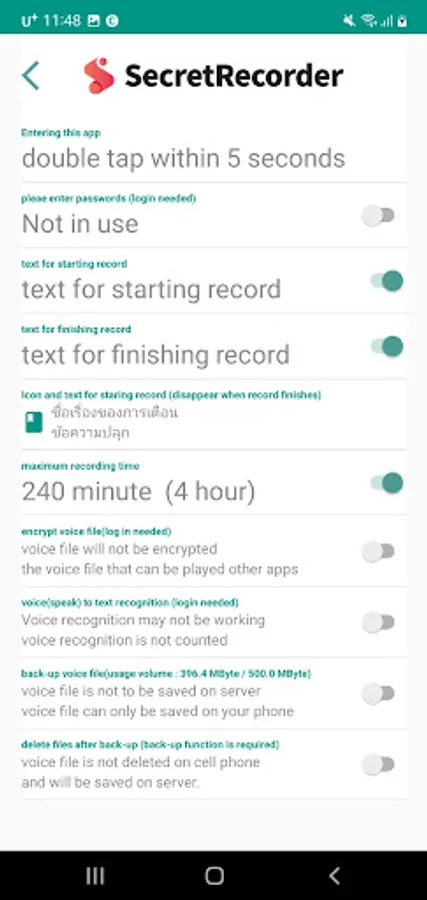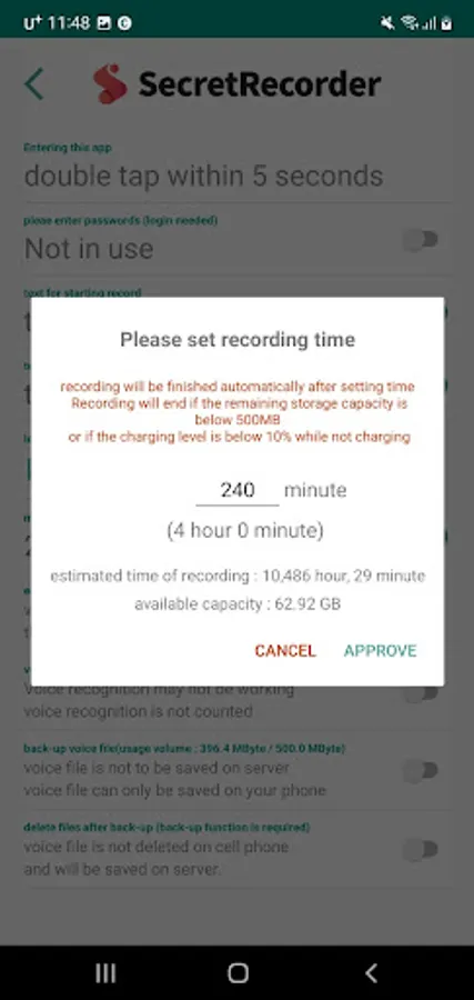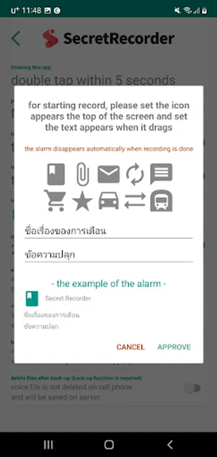 Record time and the push alarm that indicates start and end of recording can be set when you enter the app.