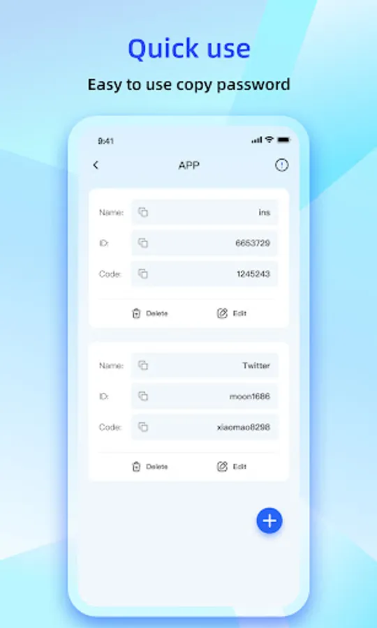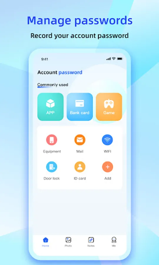 Password Manager is an account and password management APP that provides users with efficient and simple account and password management services, and supports private photo album management to protect your privacy. -Support information management of various social platforms, mailboxes, bank cards, ID cards