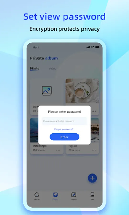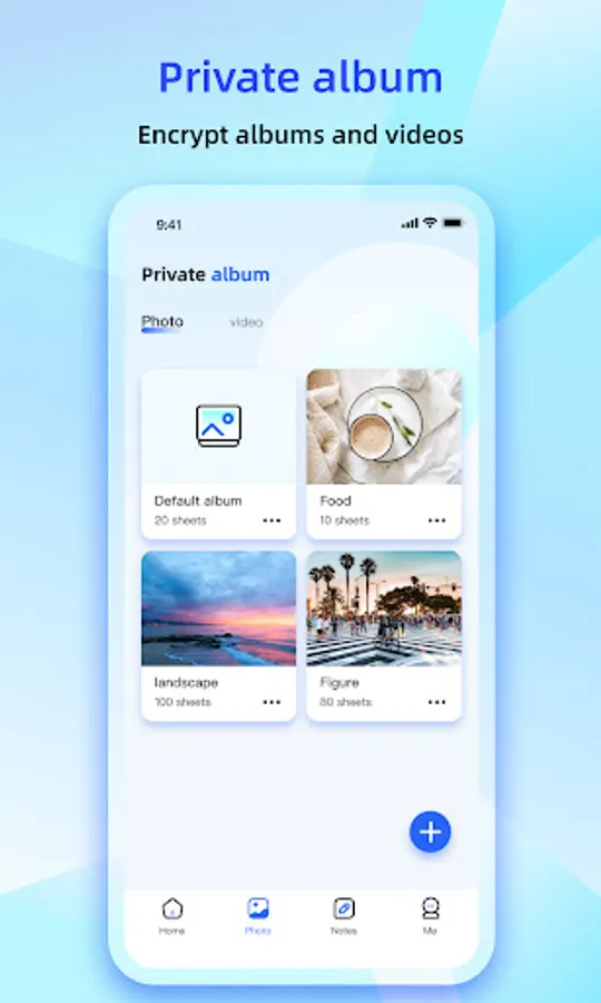 - Encrypt photo album and video, set view password