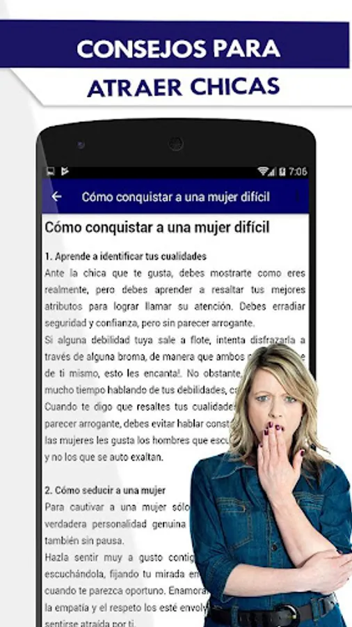 Then "Seduce a woman" this is the application you were looking for Here we share the most valuable advice you need to know how to conquer a woman.