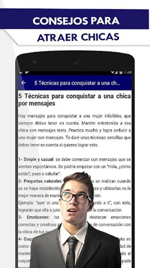 Secrets to Seduce a Girl, is the application with the necessary information to know those details that men often overlook to conquer and fall in love with a woman. Pay attention and read carefully all the information that you will find here that are the necessary tools to launch you to conquer that woman.