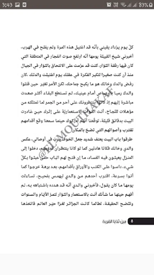 A novel between the folds of the village: It is a novel that talks about a village that lived during the period of French colonialism in Algeria, trying to struggle and liberate. You also talk about what colonialism did to the land of Algeria