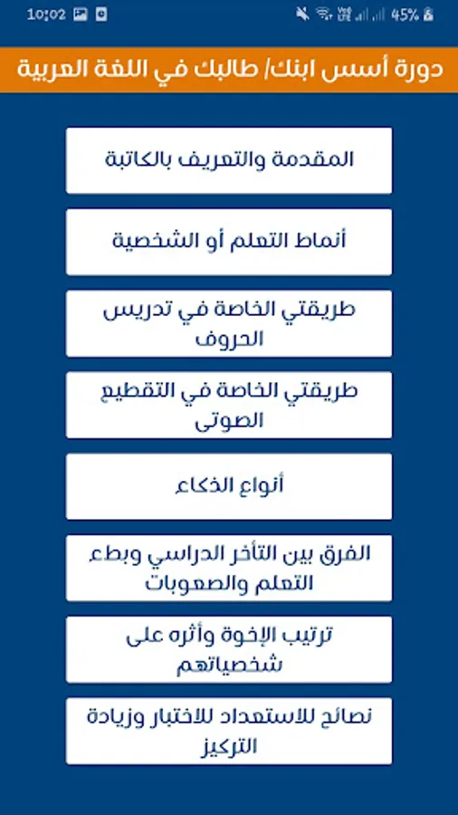 In this course, the guardian and the teacher were given skills and methods to strengthen or establish him in Arabic to be able to read and write, to keep pace with his peers and restore his self-confidence.