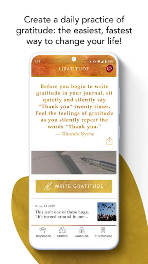The App contains some of Rhonda’s favourite Secret practices, such as: AFFIRMATIONS, a GRATITUDE practice, life-changing real-life STORIES, and a daily INSPIRATION feed.