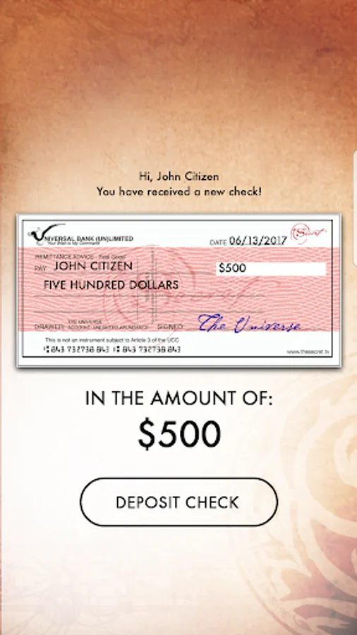 PURCHASES: In this practice, you will change your mindset about money by spending large amounts of money in your imagination. Every day, you will receive virtual checks in escalating amounts from the Bank of the Universe, as first introduced in The Secret book. Using your imagination, you “spend” each check on whatever you want or need, and record these purchases within the app. Currencies are localised for each country and set according to the language and location setting on the phone or tablet.