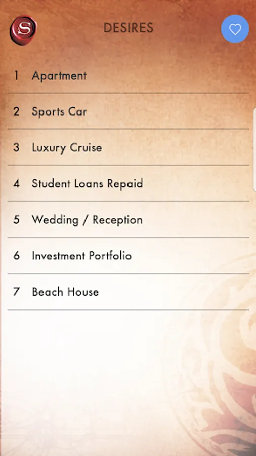 DESIRES: In this practice, you create a list of 7 things you would buy if money were no object. This "Secret" list reminds you of why you want more money in your life, and what it would actually feel like to have the things you desire most.