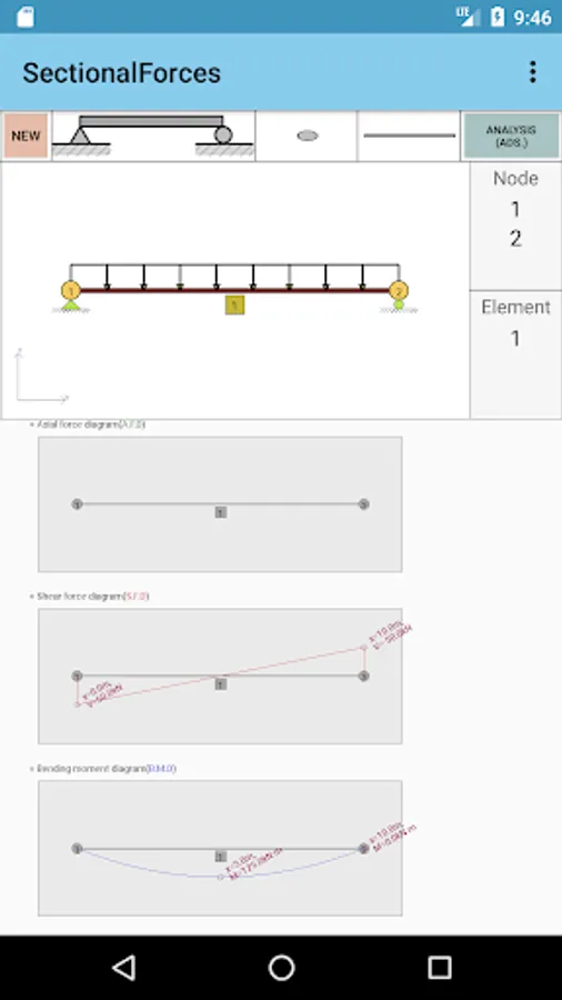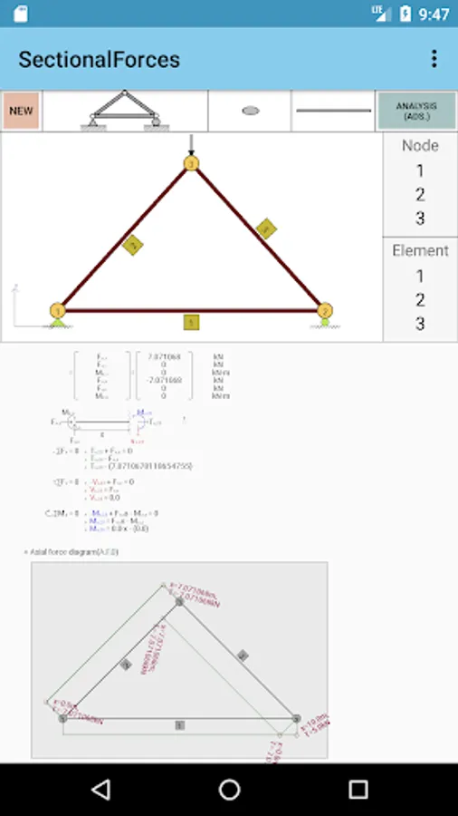It is an application that draws axial force diagram, member force diagram, and bending moment diagram through matrix analysis.