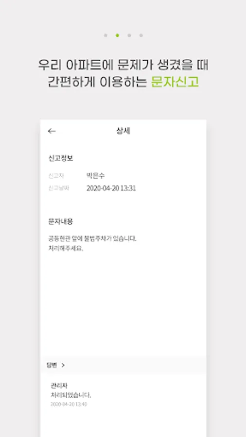 You can check the status of our apartment security guard, such as the result of my emergency situation and the message of my business processing message, anytime, anywhere, so you can see the trustworthy appearance of our apartment security guard.