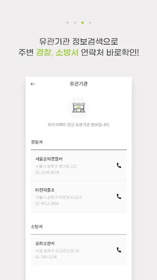 If it is an emergency, you may be insane enough to do what the 119 number is, but you can search and call the contact information of the police, fire department, city hall, etc. around you by searching the information of related agencies in Secuone Kolmi.