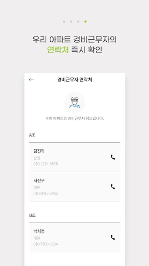 ■ Would you like to check the contact information for our apartment guards? You can search immediately