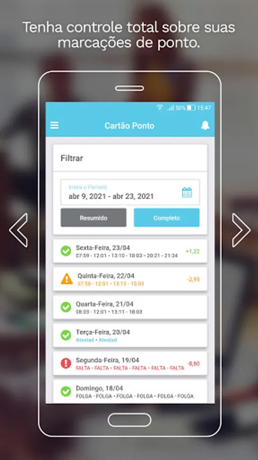 The APP allows you to track the time card and indicators such as extras, absences, delays, among others. Request adjustments to the point, launch justifications, and follow up on these requests. The application can be used by both employees and managers to monitor your team.