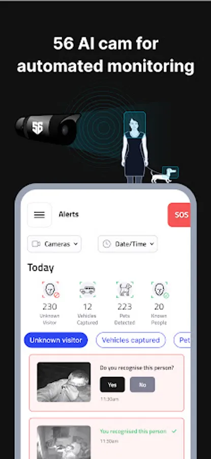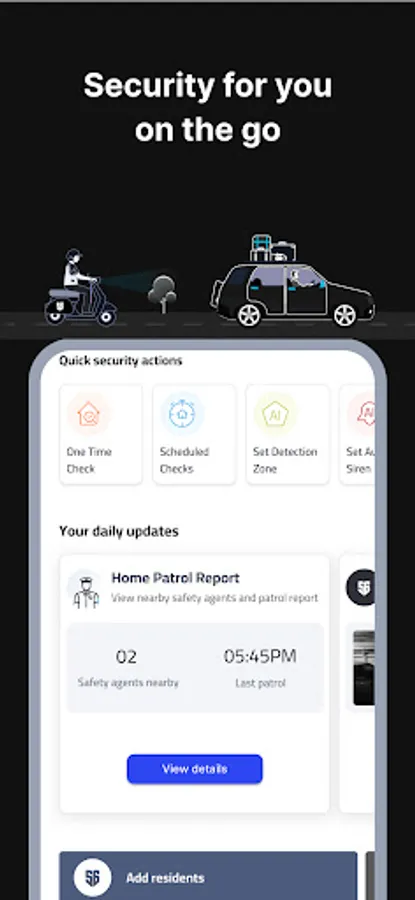 • Smart Eye - 56 Secure keeps track of your AI security camera alerts and dispatches a patrol guard to your home location incase of any intrusion without you needing to press SOS on our app.