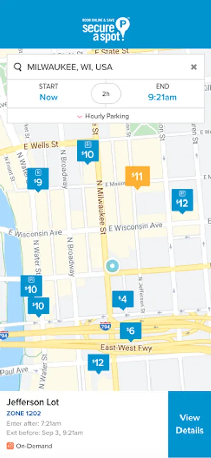 - Choose a parking spot based on price, availability, and proximity